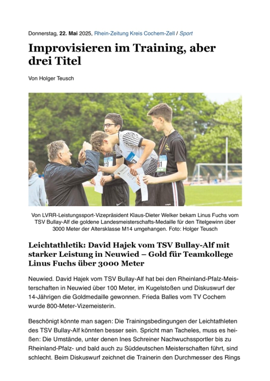 Rhein-Zeitung. Abt. Leichtathletik 05.2025